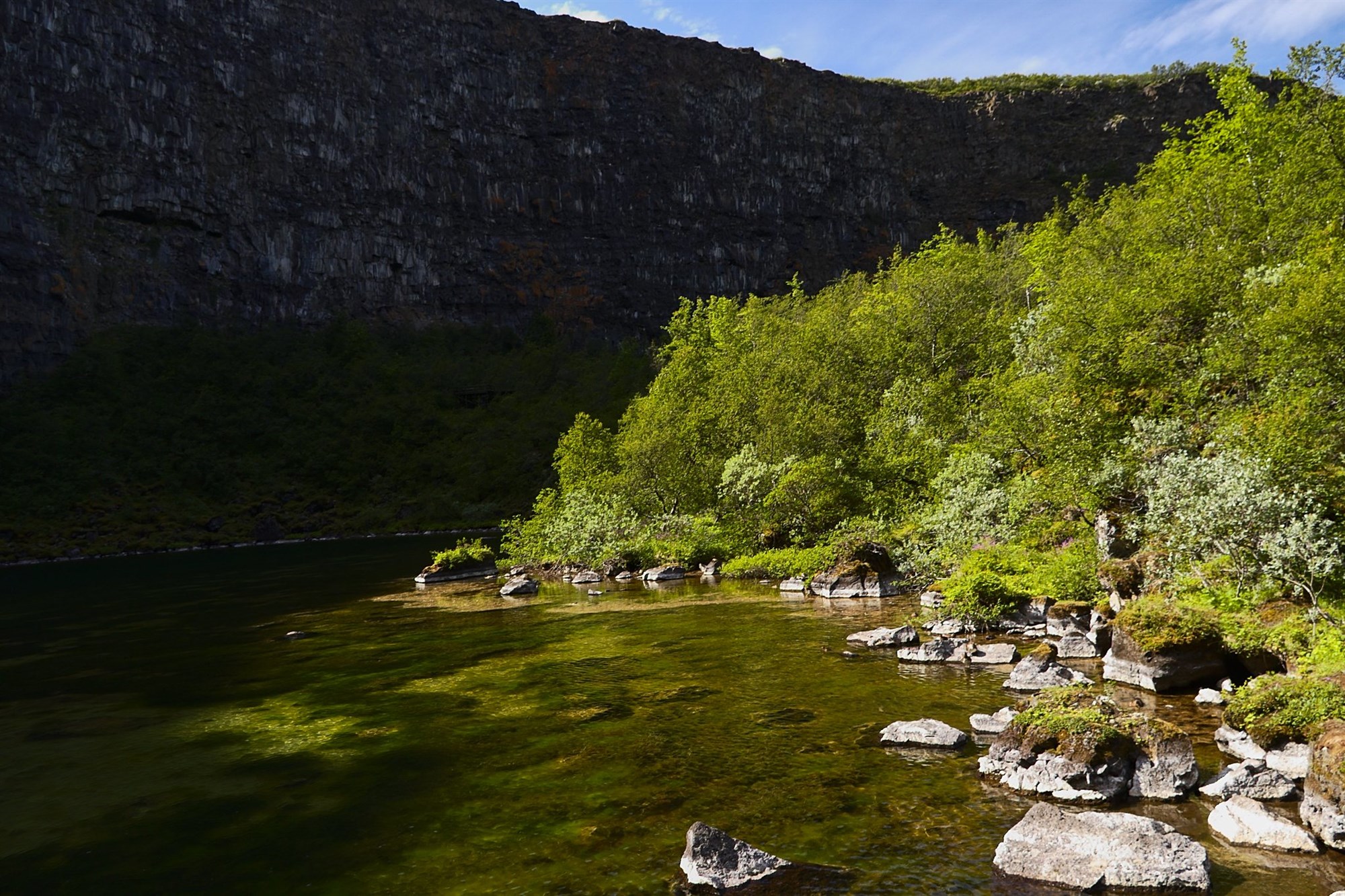 The Ásbyrgi canyon is one of these places that will leave you speechless. This horseshoe-shaped woodland of birch trees is also called the “Shelter of the Gods”.